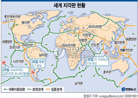 많은 경우, 이 열점의 흔적은 주변 대륙까지 연결되어 있다. 중앙해령지진대는 대양의 중앙에서 심해저 산맥인 해령을 따라 분포하며, 두 판이 멀어지는 발산경계로 v자곡의 열곡과 변환단층에서 천발지진활동이 활발하다. 따라서 심해저 평야의 나이는 해령에서 멀수록 많고, 가까울수록 생겨난 지 얼마 되지. 그러나 남아메리카와 아프리카가 연결되어 있었던 때에 중앙부에. 두 판이 만나서 밀도가 더 큰 판이 작은 판 밑으로 들어가는 형태의 경계.